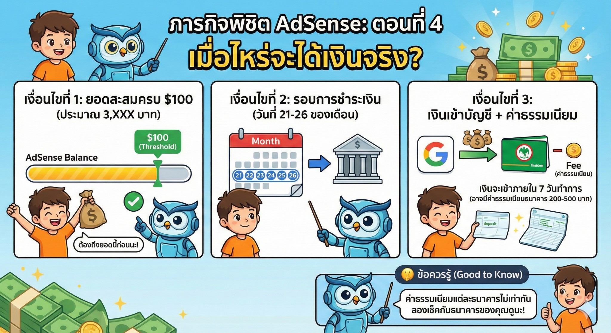 รับเงิน Google Adsense เป็นครั้งแรก คือต้องรอรายได้ให้ถึง 100$ ก่อนใช่ไหม ถึงจะมี Pin แจ้งมาครับ