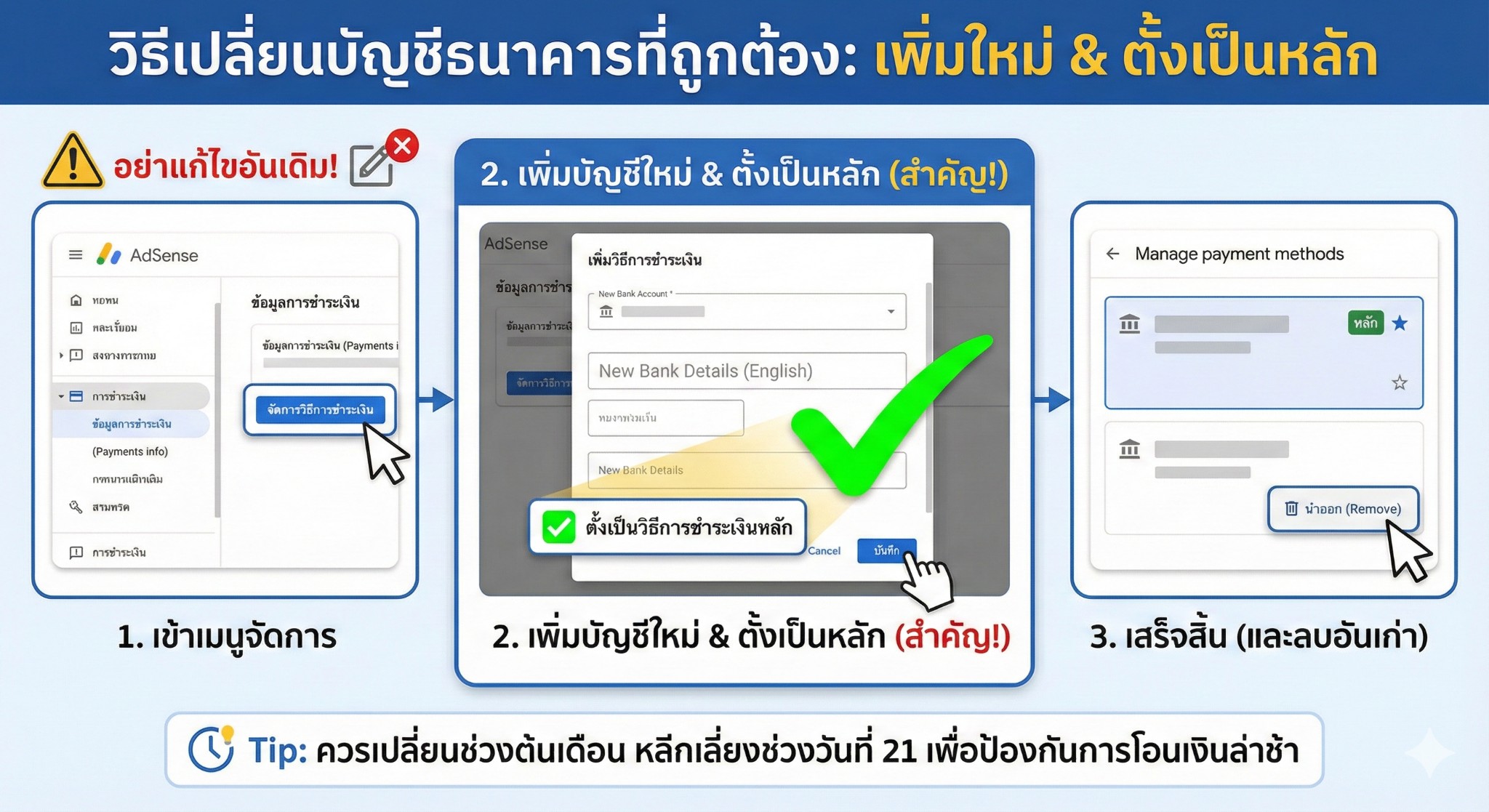 ง่ายสุดง่ายการกรอกข้อมูลธนาคารในadsense ทั้งเพิ่มและเปลี่ยน และการยืนยันตัวตนgoogle adsense