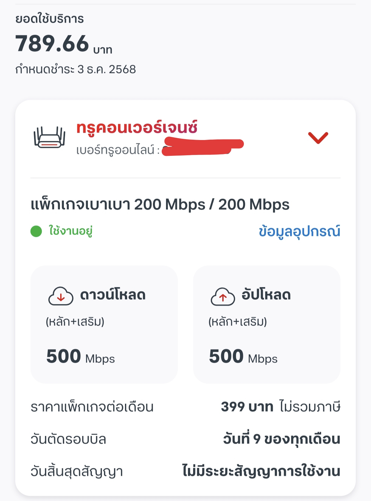 ผมตรวจเช็คแพ็คเกจเสริมในแอป True แล้ว ไม่มีมีแพ็คเกจเสริมของอินเทอร์เน็ตบ้านเลย แต่ทำไม ถึงเก็บไปตั้ง 789 ผมติดเน็ตมาหลายปีแล้วครับ