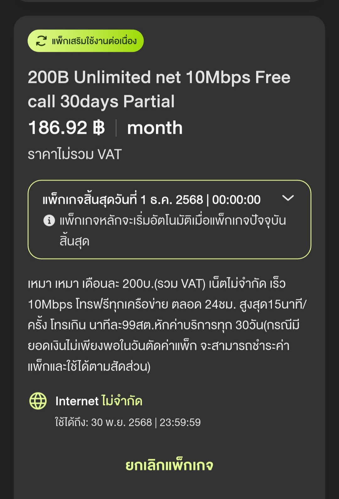 แพคเกจเทพเหมา ๆ รายเดือนของผมจะหมดสิ้นเดือนนี้ และไม่ได้ต่อแล้ว