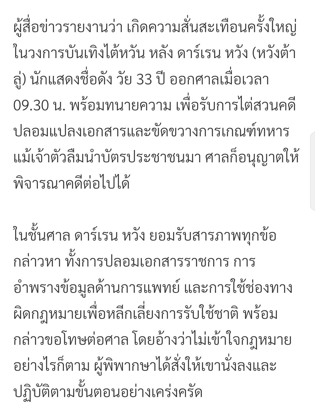 🧐 ดาร์เรน หวัง รับสารภาพจ่าย 3.6 ล้านดอลลาร์ไต้หวัน ปลอมแปลงเอกสารหนีทหาร
