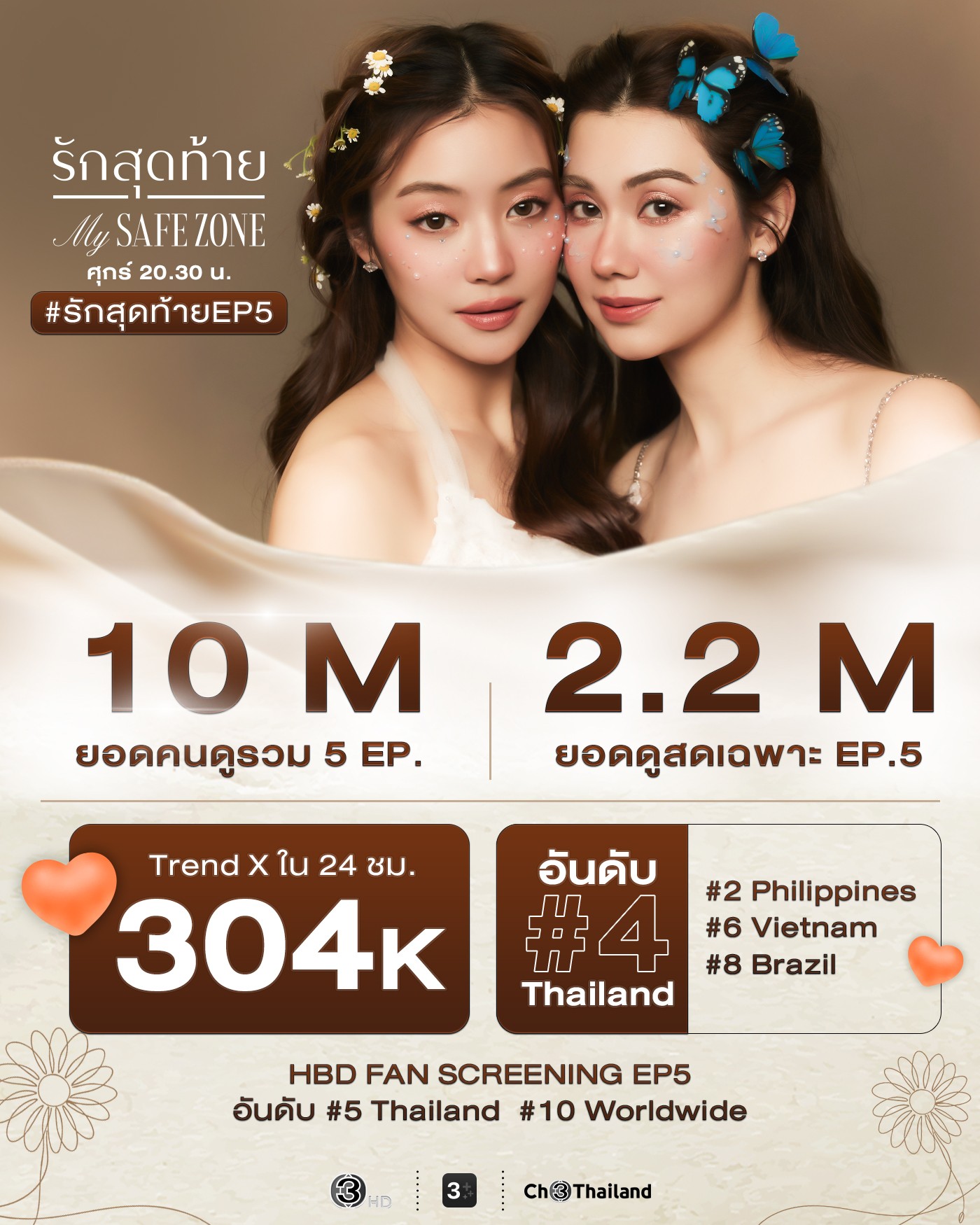 🤍 “รักสุดท้าย My Safe Zone” #รักสุดท้ายEP5 304 K ❀ ขึ้นเทรนด์อันดับ 4 ไทย ❀ ยอดคนดูรวม 5 EP. ทะลุ 10 M 🎉