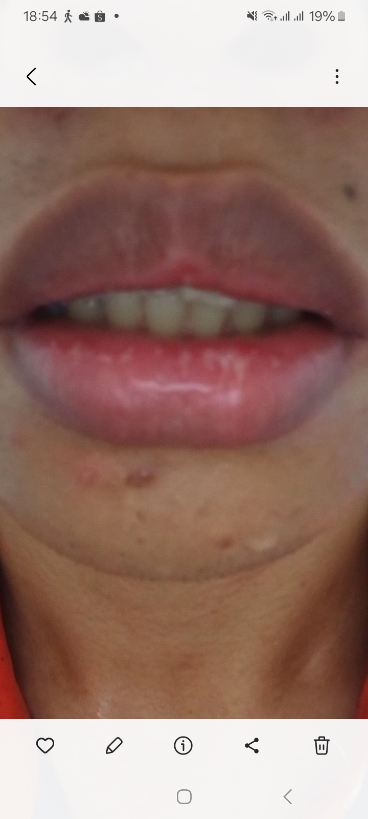 เรื่องมีอยู่ว่า มีอยู่วันนึงจู่ๆก็เกิดอาการคันที่ขอบปากบนและล่าง พอเกาแล้ววันต่อมาขอบปากก็แห้ง พอแห้งแล้วมันก็หลุด เมื่อหลุดแล้วมีอาการแสบผิวปากเป็นอย่างมาก แสบๆคันคันปะปนกันไป แล้วก็มีน้ำหนองไห