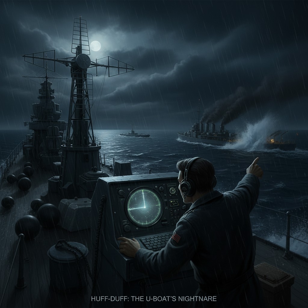 Huff-Duff เป็นอุปกรณ์อิเล็กทรอนิกส์ที่ซับซ้อน (สำหรับยุคนั้น) ติดตั้งอยู่บนเรือคุ้มกันของฝ่ายสัมพันธมิตร
