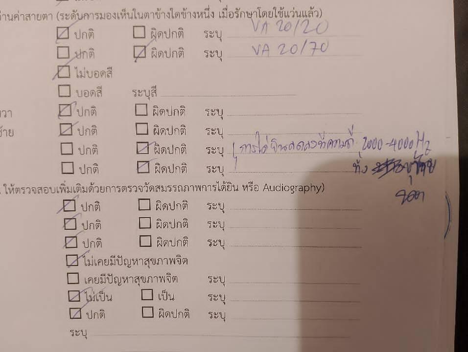 หูซ้ายผิดปกติเล็กน้อย ยังสามารถได้ยินเสียงคนพูดได้ปกติ ถ้าไม่ตรวจก็ไม่เจอ ไม่ส่งผลกระทบต่อการใช้ชีวิตประจำวัน แล้วแบบนี้จะส่งผลต่อการพิจารณารับเข้าของบรมมั้ยค่ะ
