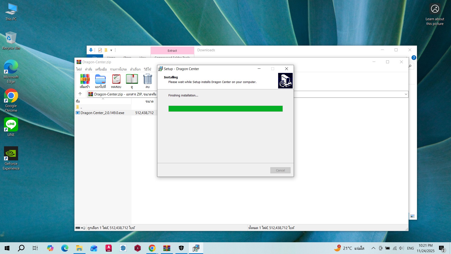 โน๊ตบุ๊คผมMSI-gf63thin-10SCXR ลงวินโดว์ใหม่แล้วติดตั้งโปรแกรมMSI Dragon Center ไม่ได้ พอติดตั้งแล้วรอจนโหลดเสร็จมันขึ้นว่า Finishing installation... แล้วก็หายไปเลย หา Dragon Center ไม่เจอ แก้ไขยังไง