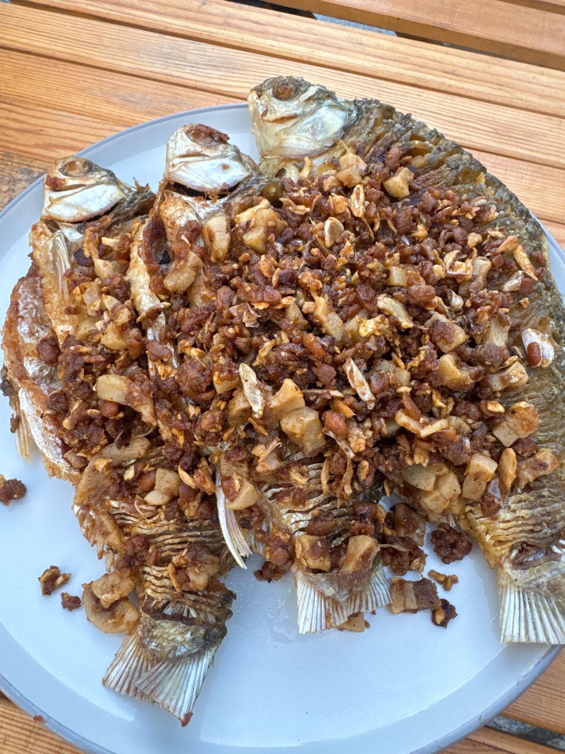 “ปลาตะเพียนทอด ราดเต้าเจี้ยว“