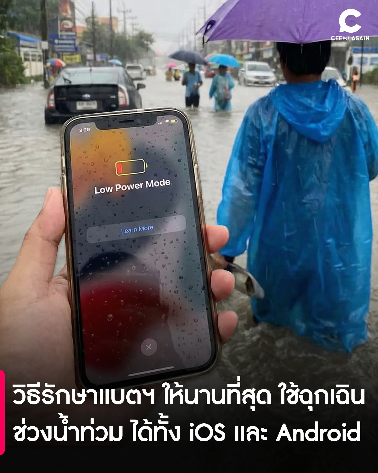วิธีรักษาแบตฯ ให้นานที่สุด ใช้ฉุกเฉิน ช่วงน้ำท่วม ได้ทั้ง iOS และ Android ยืดระยะเวลาใช้งานไว้ขอความช่วยเหลือ