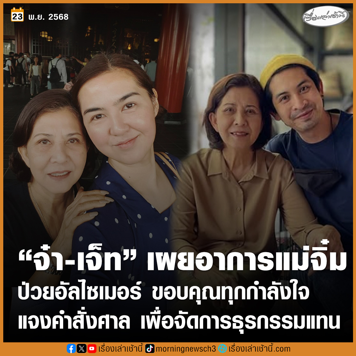 "จ๋า ยศสินี-เจ็ท ณัฐพงศ์" เผยอาการ "คุณแม่จิ๋ม มยุรฉัตร" ป่วยโรคอัลไซเมอร์ ยอมรับเจ็บปวดจนพูดไม่ออก คนตรงหน้าไม่ใช่คนเดิมที่เราเคยอยู่ด้วยมา 100% ทุกคนในครอบครัว จะดูแลให้ดีที่สุด ขอบคุณทุกกำลังใจ แจงคำสั่งศาลให้เป็นคนไร้ความสามารถ เป็นขั้นตอนทางกฎหมาย เพื่อให้จัดการธุรกรรมได้ถูกต้องตามสิทธิ์