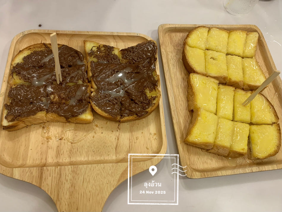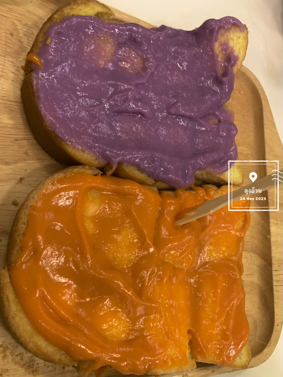 ปังปิ้งสังขยาชาไทย + ปังปิ้งสังขยามันม่วง