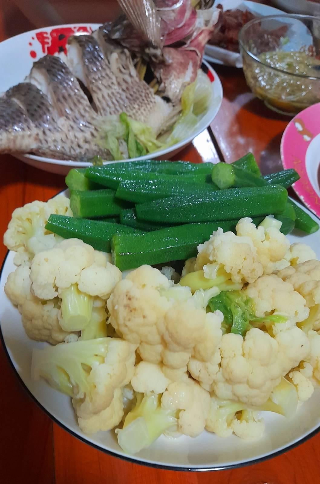 เมนูง่ายๆ ผักต้มกับปลานิลนึ่ง