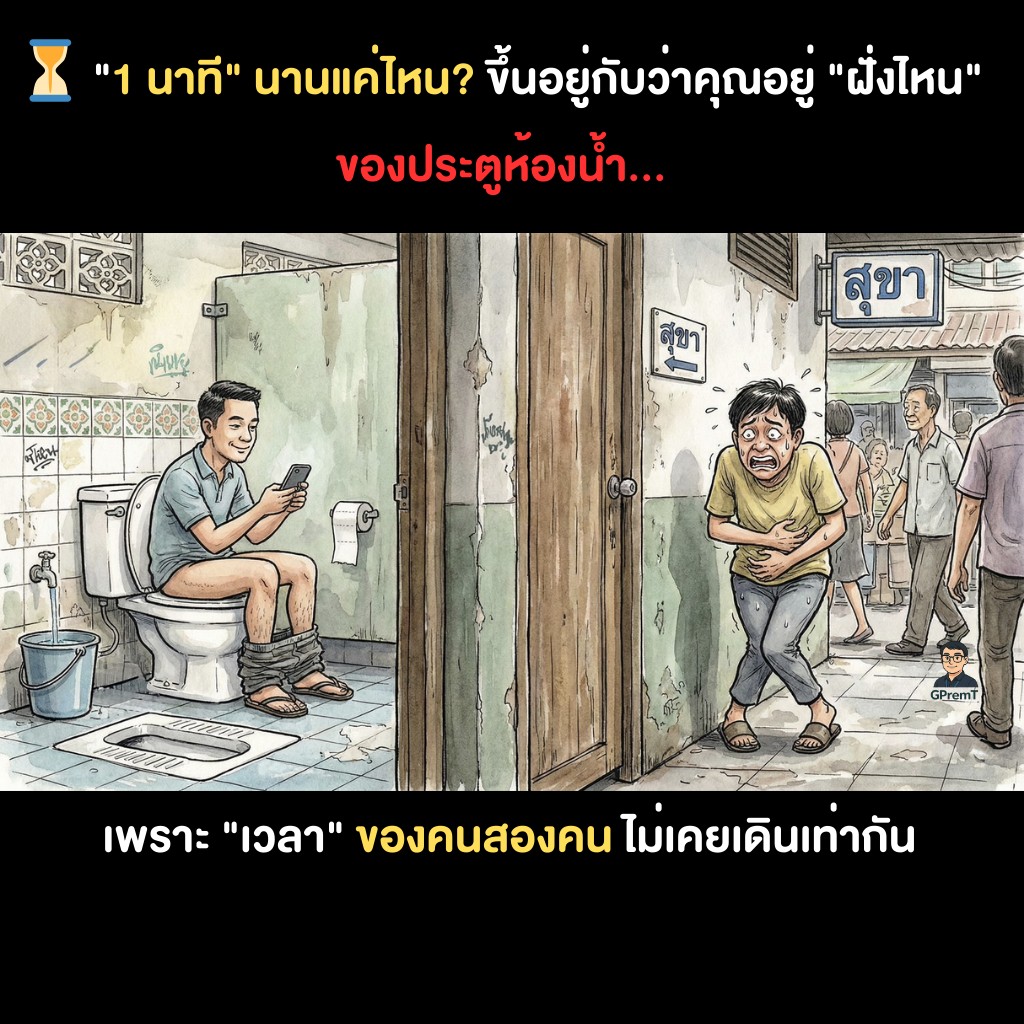 "1 นาทีนั้น นานแค่ไหน... ขึ้นอยู่กับว่าคุณอยู่ฝั่งไหนของประตูห้องน้ำ"