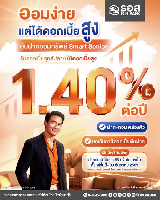 ธอส. ชูเงินฝากออมทรัพย์ จ่ายดอกเบี้ยทุกวันจันทร์