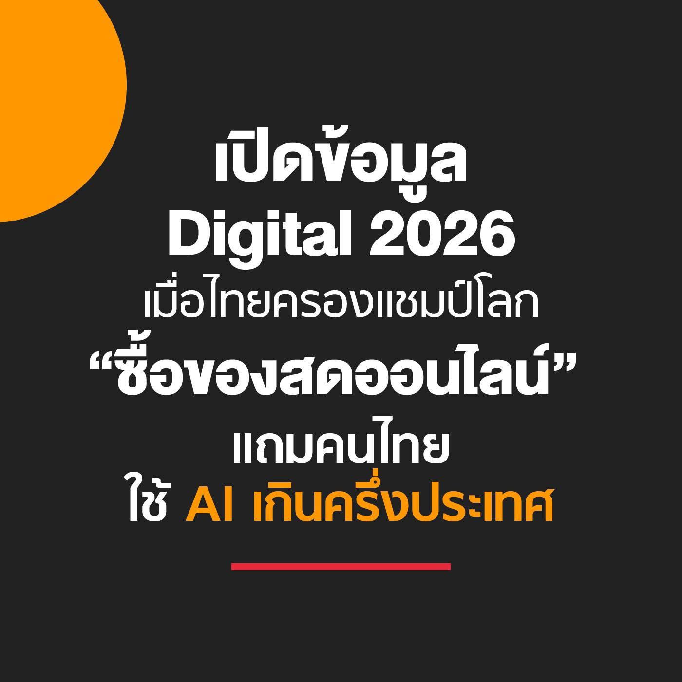 เปิดข้อมูล Digital 2026 เมื่อไทยครองแชมป์โลก “ซื้อของสดออนไลน์” แถมคนไทยใช้ AI เกินครึ่งประเทศ