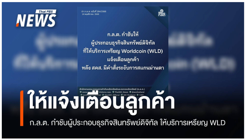 วันนี้ (24 พ.ย.2568) สำนักงานคณะกรรมการกำกับหลักทรัพย์และตลาดหลักทรัพย์ (ก.ล.ต.) กำชับให้ผู้ประกอบธุรกิจสินทรัพย์ดิจิทัลที่ให้บริการเหรียญ WLD สื่อสารกับลูกค้าให้ชัดเจนผ่านช่องทางต่าง ๆ และเน้นย้ำให้ ผู้ประกอบธุรกิจสินทรัพย์ดิจิทัลคำนึงถึงประโยชน์และผลกระทบของลูกค้าเป็นสำคัญตามที่สำนักงานคณะกรรมการคุ้มครองข้อมูลส่วนบุคคล (สคส.) เผยแพร่ข่าว ว่า