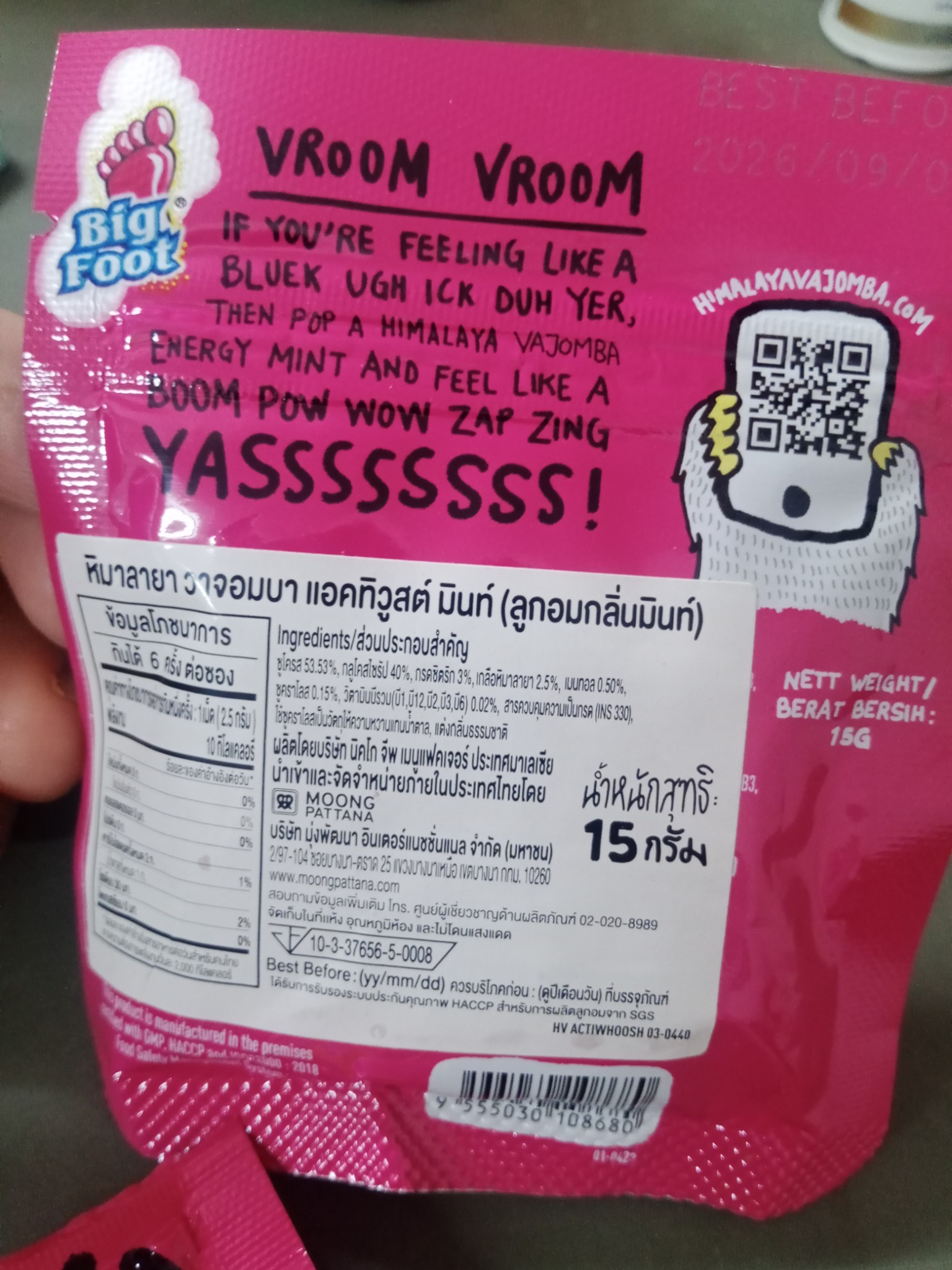 ส่วนประกอบ: เกลือหิมาลัยธรรมชาติ, วิตามินบีรวม, และส่วนผสมของสมุนไพรและมิ้นต์
