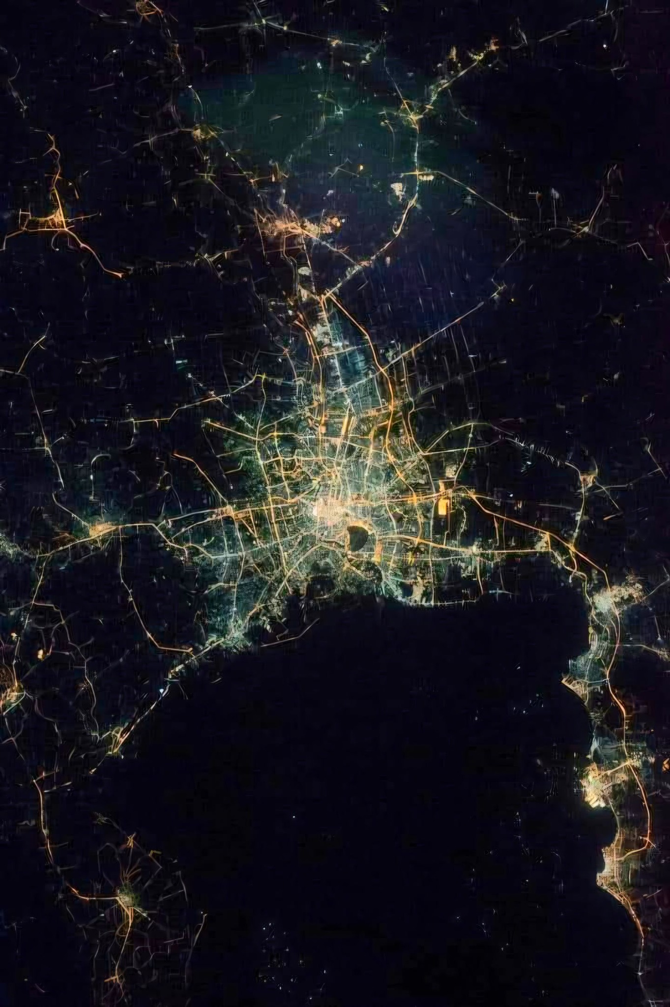 มุมมองที่หาดูได้ยากและแสดงให้เห็นถึงความหนาแน่นของแสงไฟที่สวยงามมาก