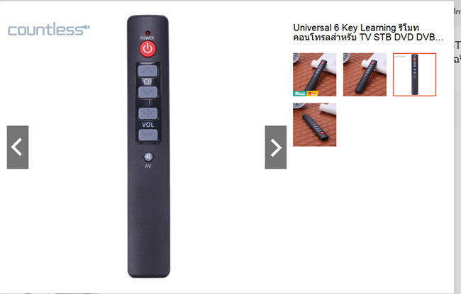 ผมเคยใช้รีโมทครอบจักรวาลของ Family เมื่อปี 2544 ตอนนั้นเห็นเขาโฆษณาใช้ได้กับทีวีทุกยี่ห้อในโลกก็เลยอยากได้ซื้อมา 790 บาท ถือว่าแพงมากเพราะยุคนั้นทองคำบาทละ 5,800 บาท รีโมทตัวนี้ไม่ได้ใช้การ Copy คำสั่งจากรีโมทตัวเดิมแต่เขาใช้การเขียนคำสั่งไว้ล่วงหน้าแล้วให้เลือกคำสั่งให้ตรงกับรุ่นทีวีก็ใช้ได้แล้ว แต่ Universal Remote control ยุคใหม่นี้ผมยังไม่เคยเห็นตัวจริง หากมีรุ่นที่มีปุ่ม 10-15 ปุ่มขายจะดีมาก สมาชิกท่านใดเคยใช้หรือเคยเห็นรุ่นที่คิดว่าจะใช้ดีช่วยแนะนำด้วยครับ