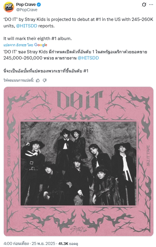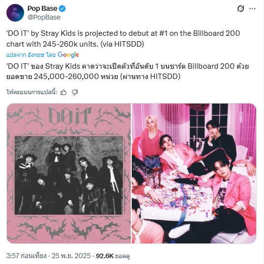 🔥 Stray Kids มีการคาดการณ์ว่า "DO IT" จะเปิดตัวที่อันดับ 1 บน Billboard 200 ด้วยยอดขาย (245,000-260,000 ชุด)! ตามรายงานของ HITSDD