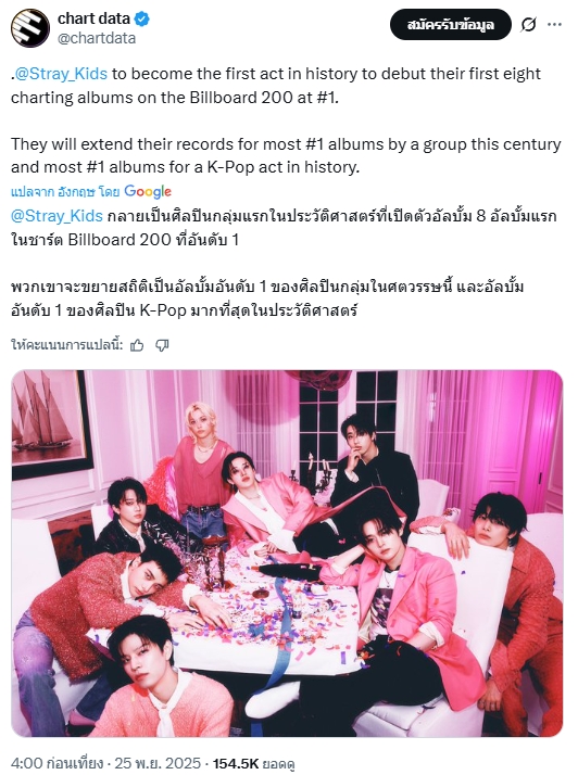 - SKZ จะกลายเป็นศิลปินกลุ่มแรกในประวัติศาสตร์ที่เปิดตัวอัลบั้มแปดอัลบั้มแรกของพวกเขาบนชาร์ต Billboard 200 ที่อันดับ 1