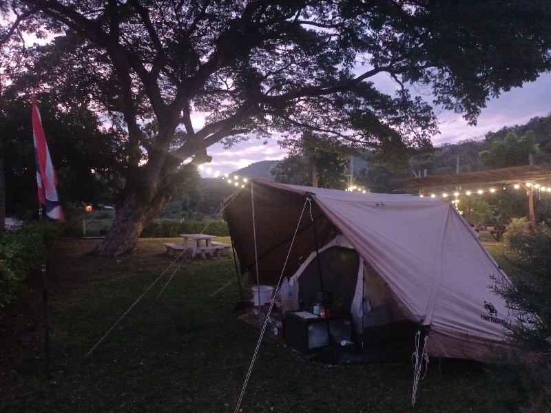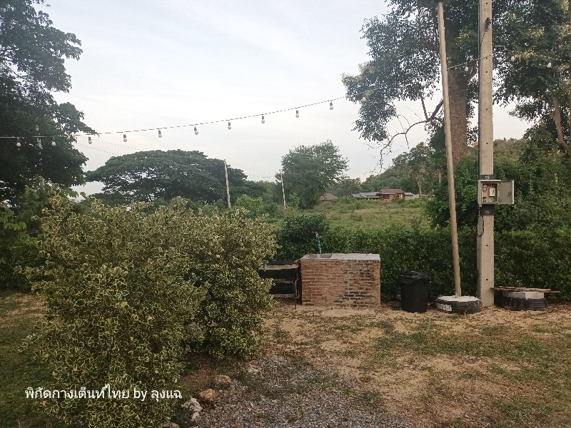 มาถึงลานบ่ายโมงพอดีตามที่ตั้งใจ เปิดประตูเข้าลาน คุณแม่เจ้าของลานอยู่พอดี กำลังเก็บกวาดลาน ให้น้ำต้นไม้ ทักทาย แจ้งให้ทราบ ผมทักมาแล้ว และจ่ายตังค์ค่ากาง (ที่นี่อยู่ฝั่งตรงข้ามบ้านท่าฤทธิ์ที่เคยไปกางมาแล้ว)