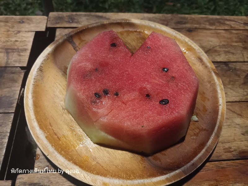 กลับมานั่งกินมื้อเย็นเป็นแตงโม 1 ชิ้นโตๆ รองท้องครับ อากาศเย็นสบายๆ คุณแม่น้ำในอ่างค่อนข้างเยอะเหมือนทุกปี แต่ปีที่เยอะมาก น้ำจะเกือบล้นข้ามถนนเลย
