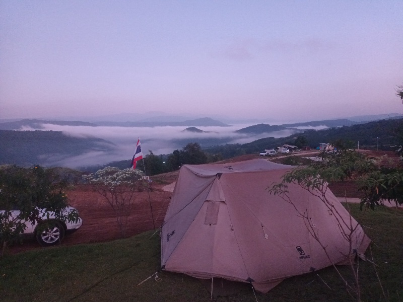 ตื่นตี 5 ครึ่ง พับผ้าห่ม เก็บที่นอนแล้วออกมาเข้าห้องน้ำ ฟ้าสว่างเร็ว และแสงแรกยังสวย ทะเลหมอกเช้านี้แน่นกว่าเมื่อวาน สวยงามครับ แต่น้ำค้างแรง มีน้ำขังบน Bushcraft ด้านหน้าครับ
