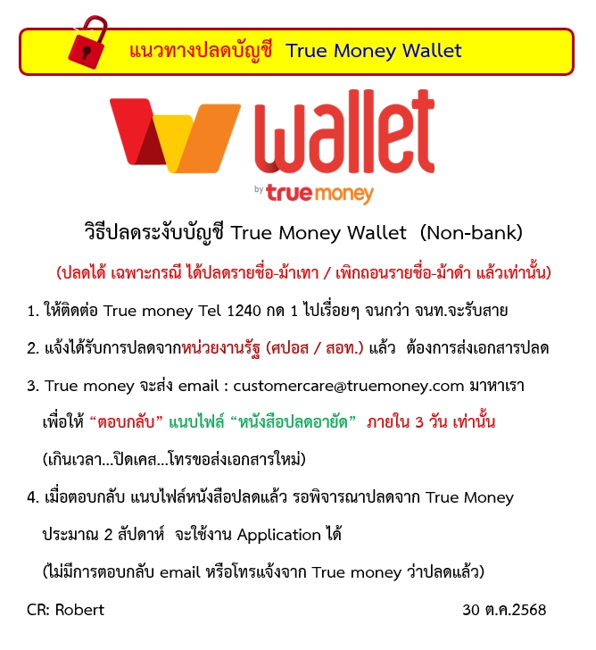 truemoney ปลดอายัดแจ้งที่ไหน โทร.1240 ไม่มีเจ้าหน้าทีรับเลย