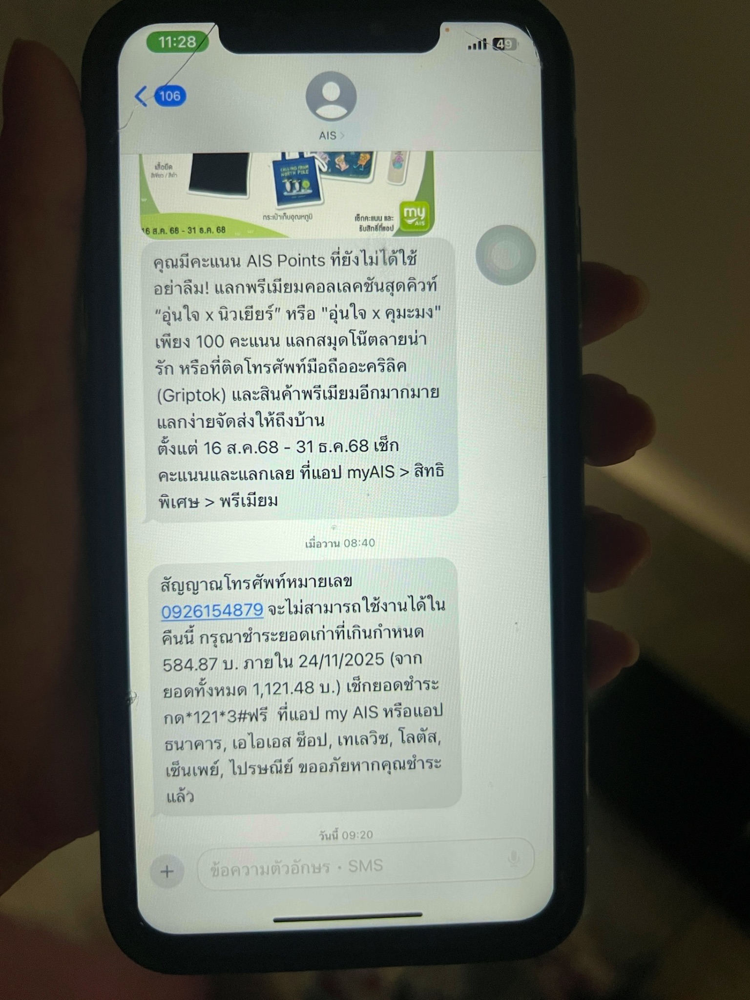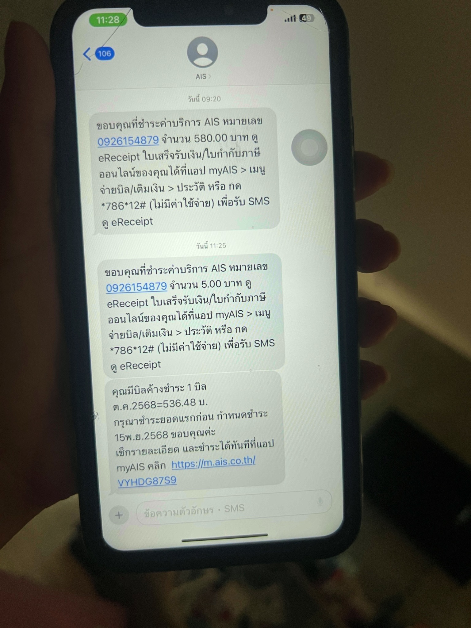ค้างชำระบิล AIS 2 เดือน มีข้อความส่งมาให้จ่ายก่อน 1 เดือน