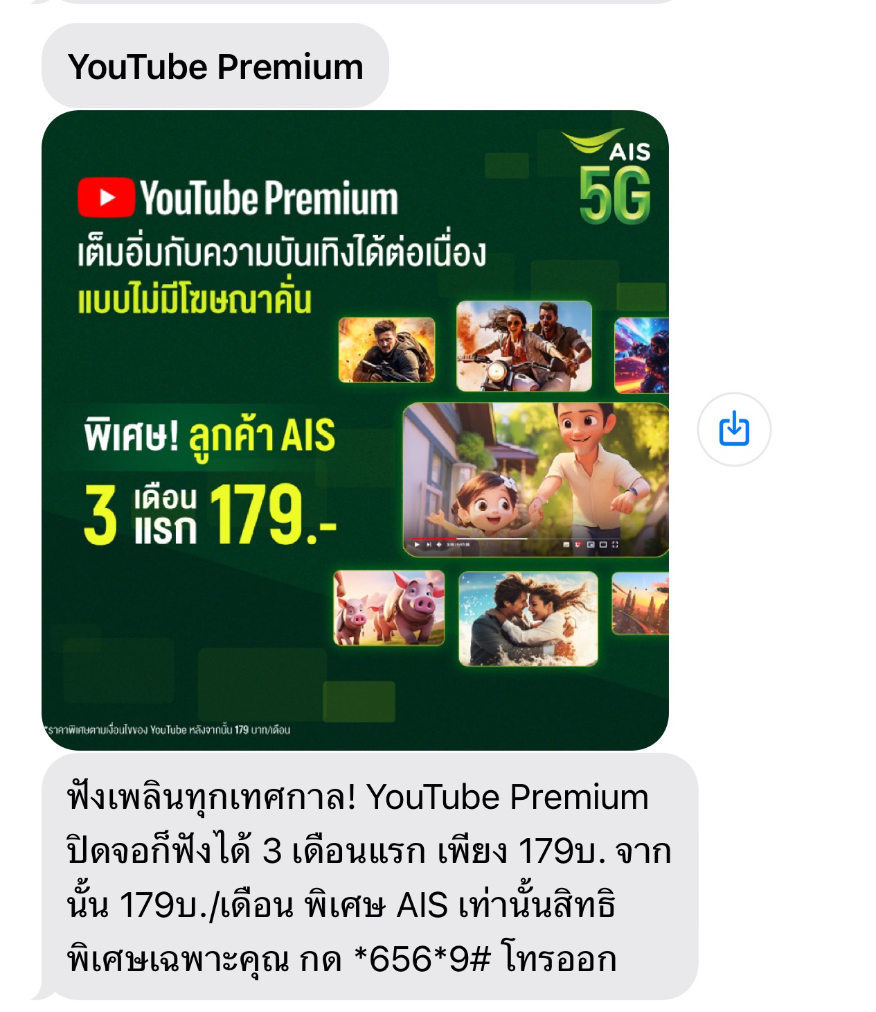หลังจากนั้นประมาณช่วงกลางเดือนเราก็สมัคร YouTube พรีเมี่ยม กับเอไอเอส เพราะเห็นโฆษณาบอกว่าฟรีสามเดือนแรก หลังจากนั้นคิดค่าบริการเดือนละ 179 บาท เราก็เลยกดสมัครไป