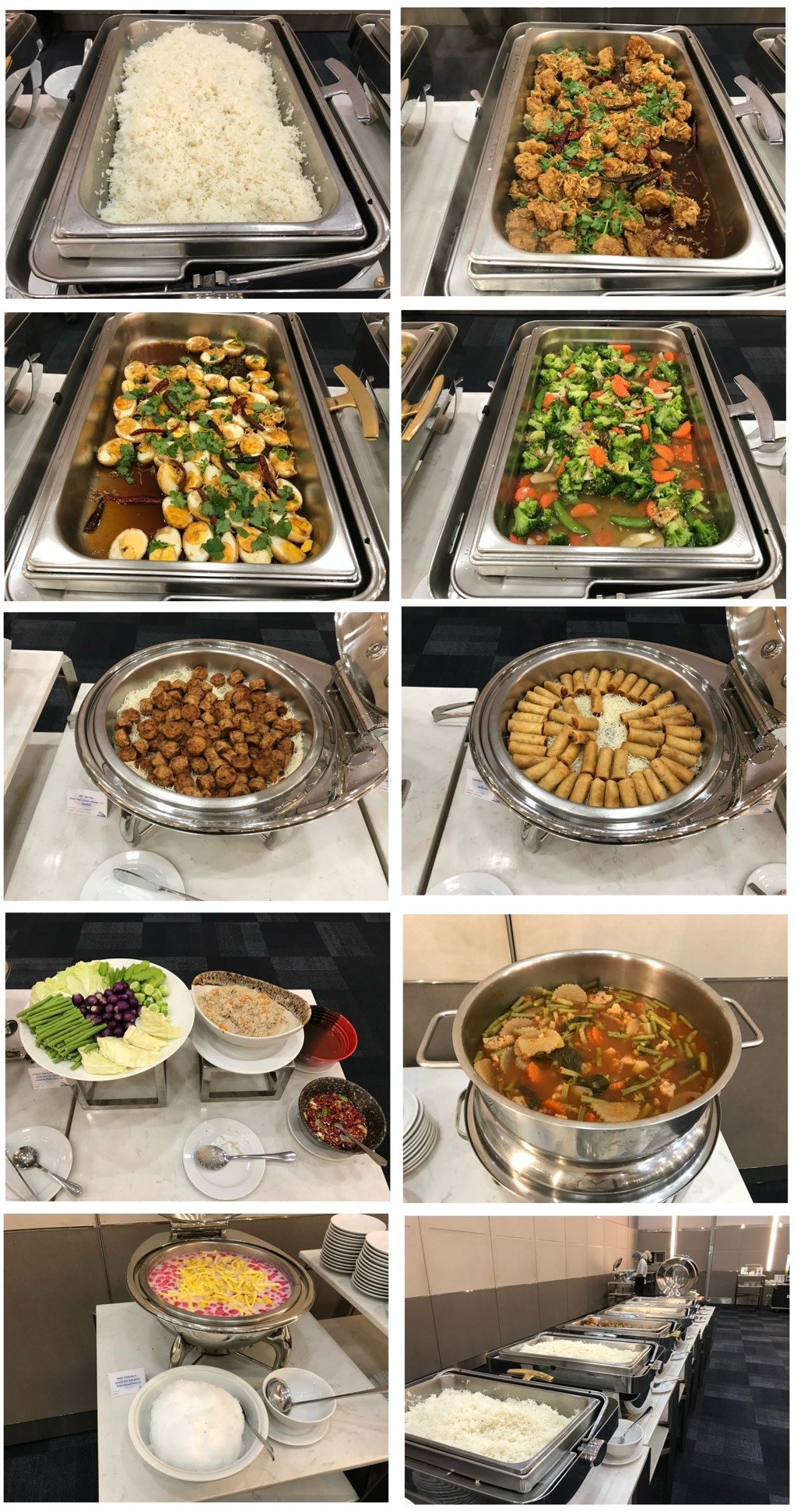 ตอนเที่ยงจะมีอาหารกลางวันเลี้ยง แบบบุฟเฟต์ (เป็นไลน์อาหารให้เดินตักกันเอง) ของวันแรกผมถ่ายรูปมาไม่ทัน มัวแต่เข้าคิวและรีบกิน แต่วันศุกร์พอดีห้องที่ผมต้องไปนั่งฟังเขาเสร็จเร็ว เลยเดินมาที่ห้องอาหารก่อน ทันได้ถ่ายรูปไลน์อาหารมา