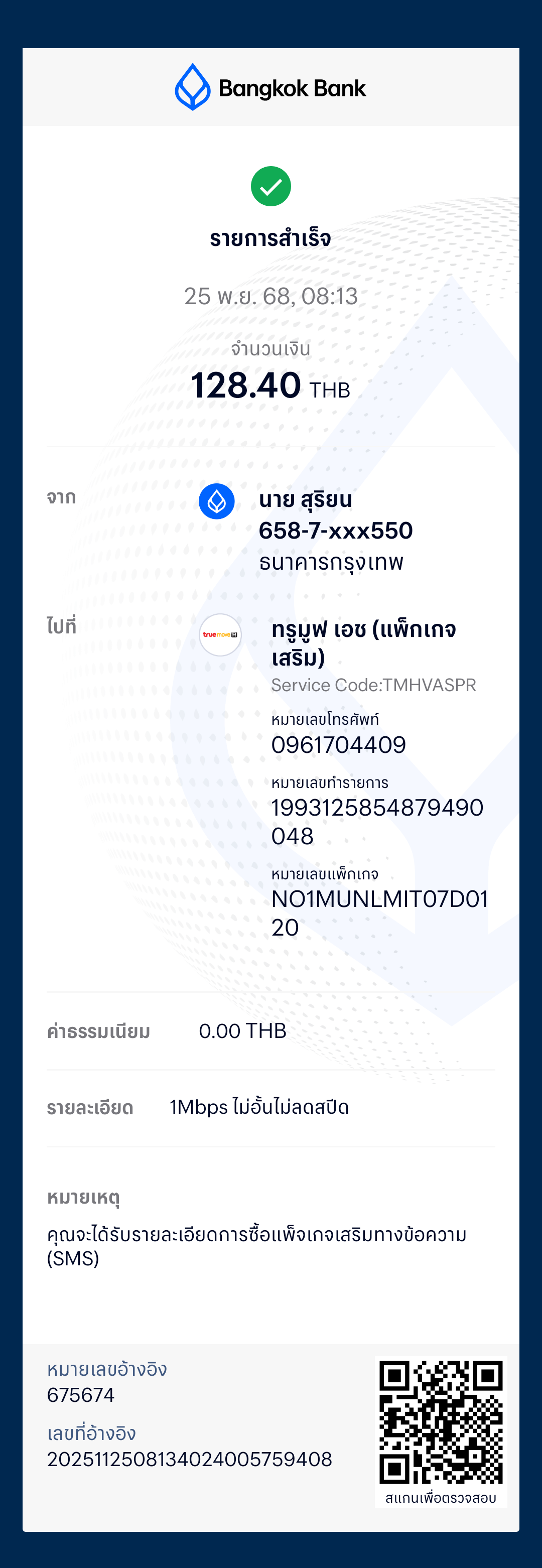 เติมเน็ตของ True move ผ่านเเอพธนาคาร หักเงินเเล้ว เเต่ไม่ได้รับ ทั้งเน็ตทั้งข้อความ เเพ็คเก็ท 1เมค 7วัน