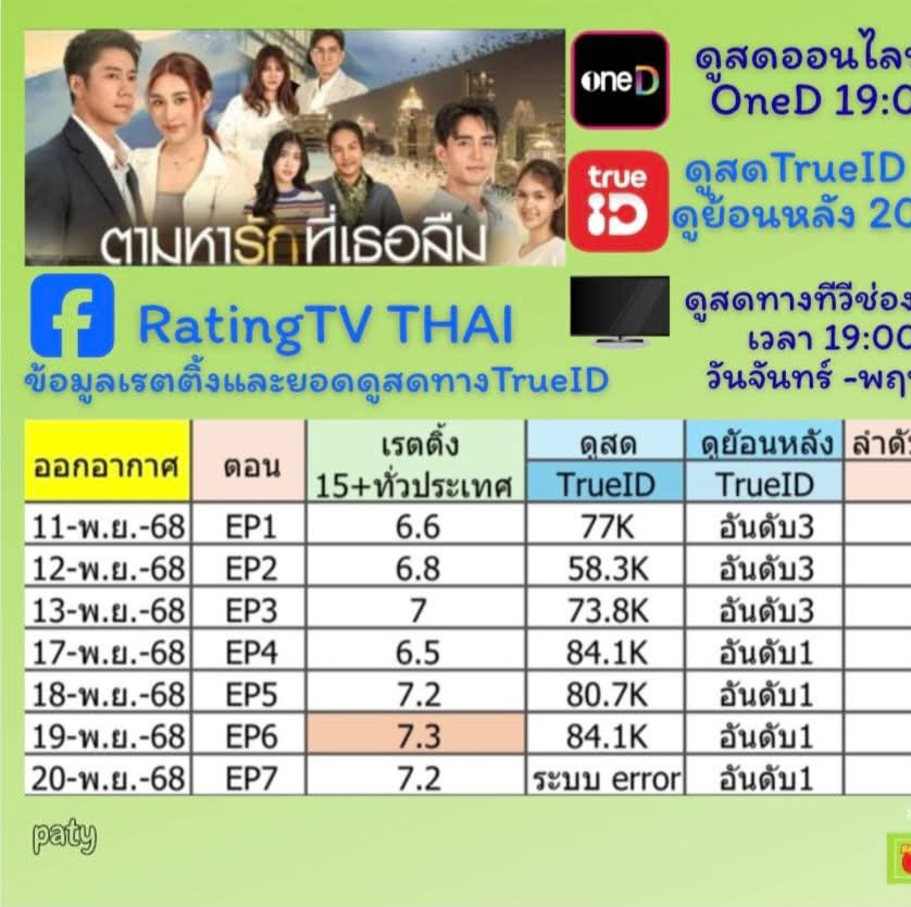 เรตติ้ง ละคร ตามหาที่เธอลืม Ep.2