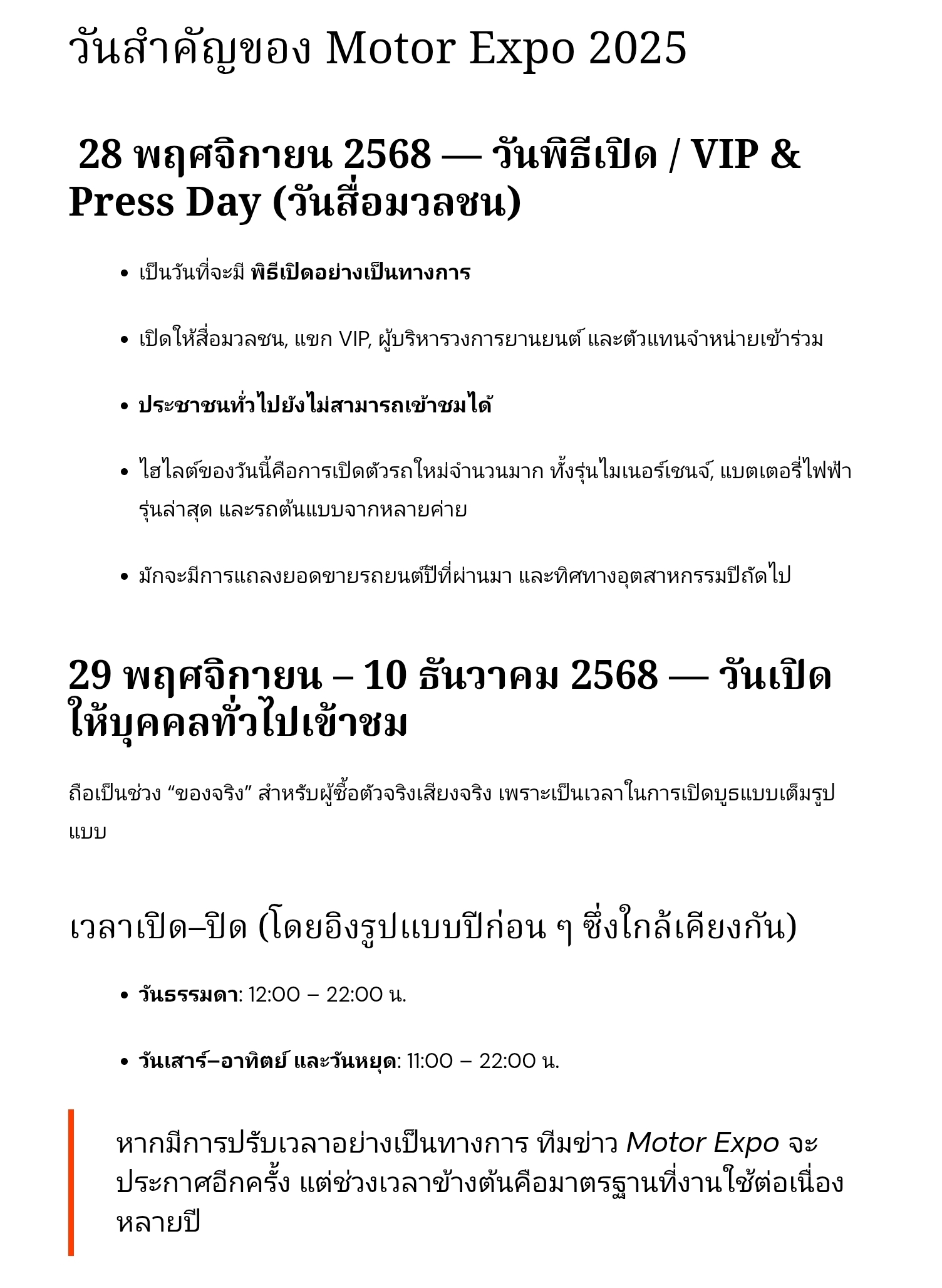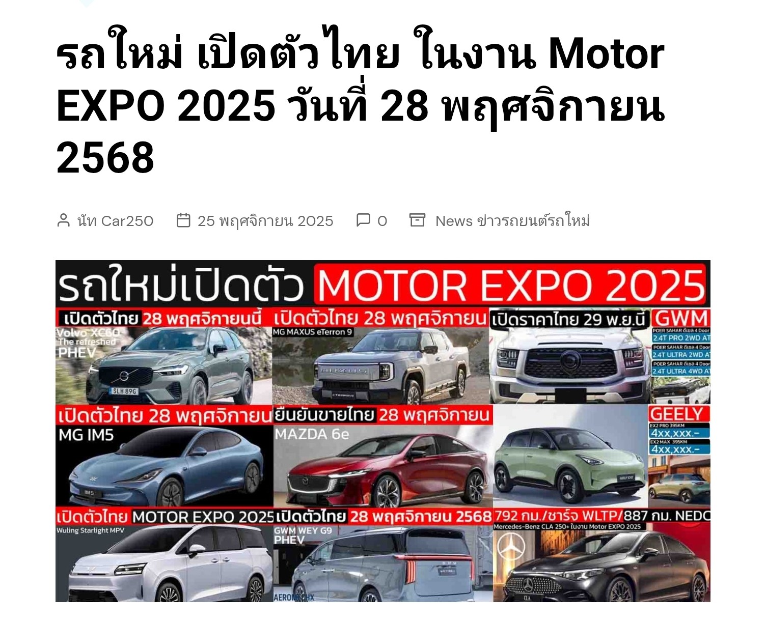 รถใหม่ เปิดตัวไทย ในงาน Motor EXPO 2025 วันที่ 28 พฤศจิกายน 2568