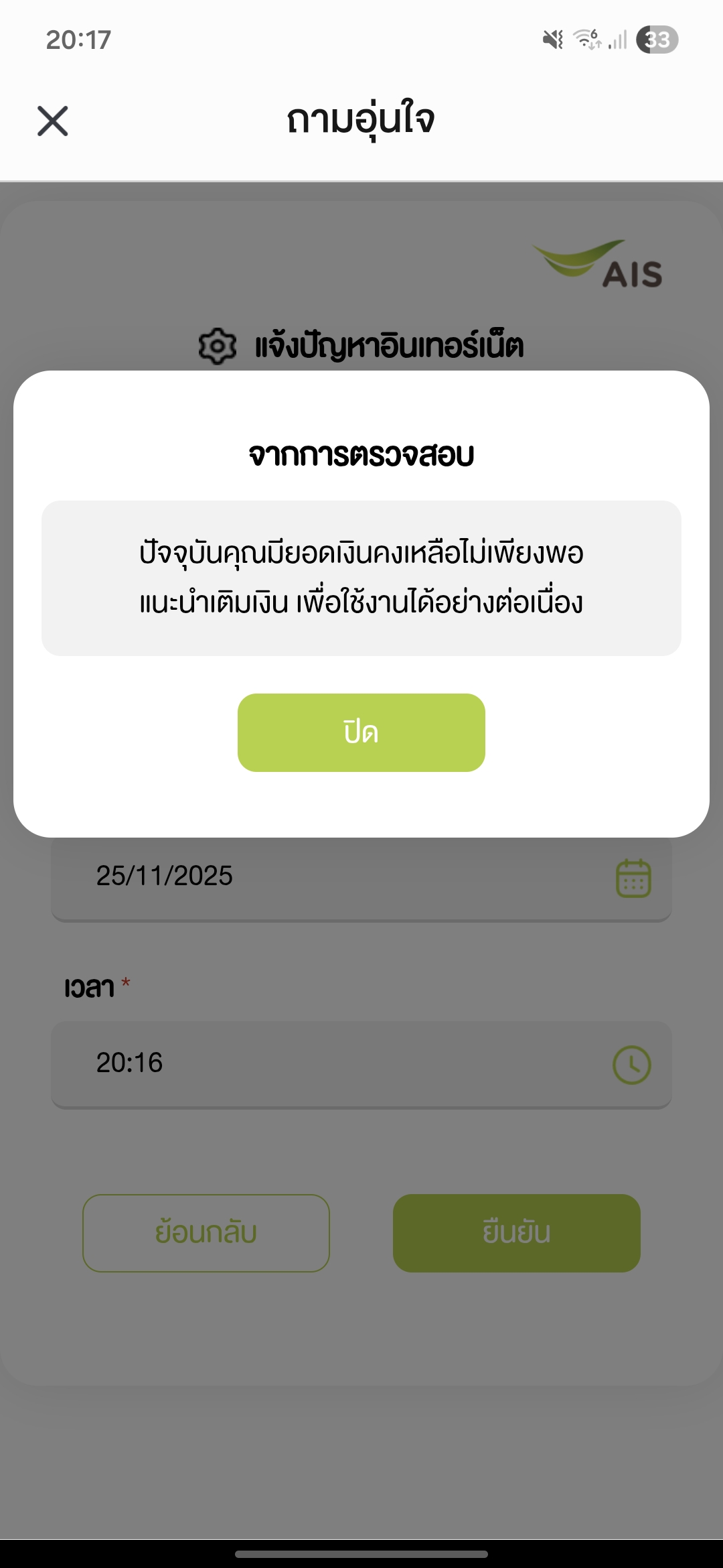 ทำไมaisทุกวันนี่ถึงได้แย่ขนาดนี้จะส่งเริ่องผ่านทางแอพว่าสัญญานที่หมู่บ้านมันไม่มีแต่ก็ยังจะคิดค่าบริการอีก พอจะโทร1175 ก็ยังจะคิดค่าบริการอีกเรื่องสัญญานที่ส่งไปรอบนั่น ยังไม่ได้รับการปรับปรุงก็แย่พอแล้วมาครั้งนี้อีก รึต้องควรเปลี่ยนไปใช้ค่ายอื่นดี