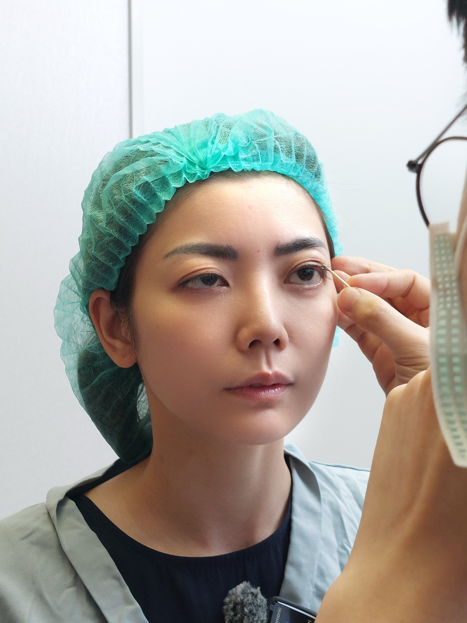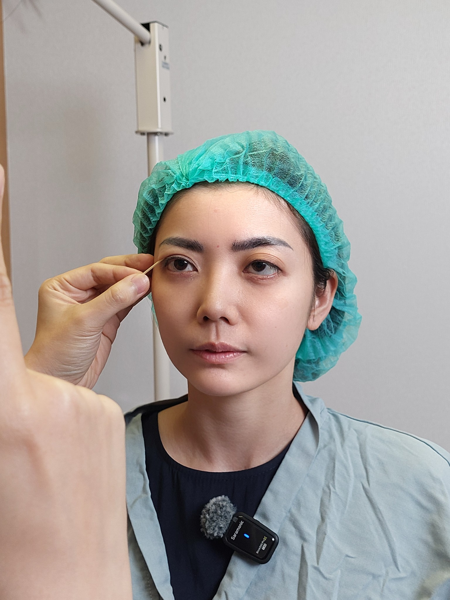 แล้วพอถึงวันทำตาจริงๆ บอกเลยว่าตื่นเต้นมากค่ะ หมอก็จะวัดชั้นตาให้แบบนี้ คอนเฟิมว่าเราจะเอาแบบนี้นะ แล้วหลังจากนั้นก็ทำการจิ้มยาชาค่ะ(เจ็บแบบพอทนได้ค่ะ) แล้วจากนั้นก็ไม่รู้เรื่องแล้วคือมีสตินะ แต่ว่าจะไม่รู้สึกเจ็บค่ะ55
