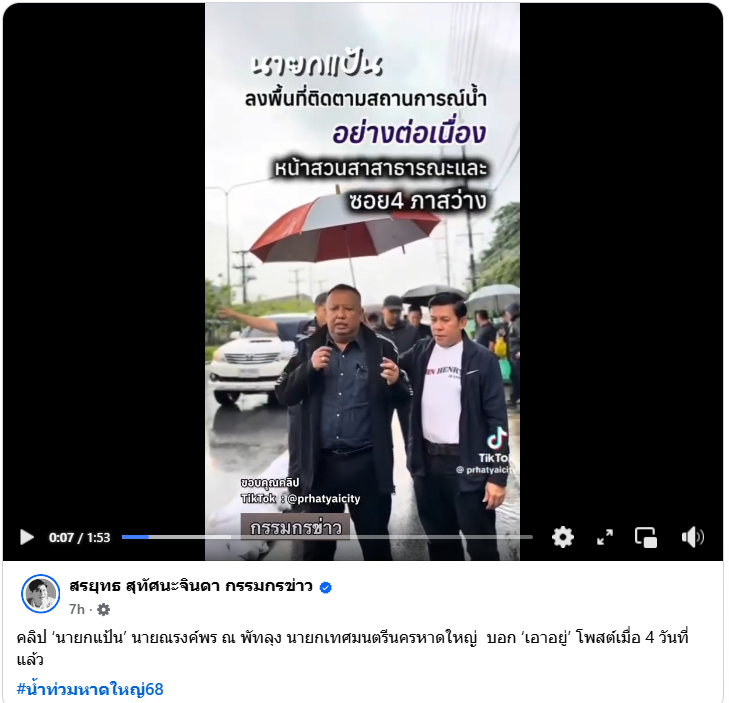 ข่าว ; ฯพณฯอนุทิน สั่งเร่งเครื่องสูบน้ำ ช่วยเหลือประชาชน