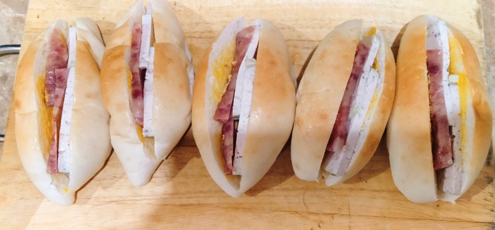 ขนมปังข้าวจี่ ไส้กุนเชียง-หมูยอ 🌭🐷