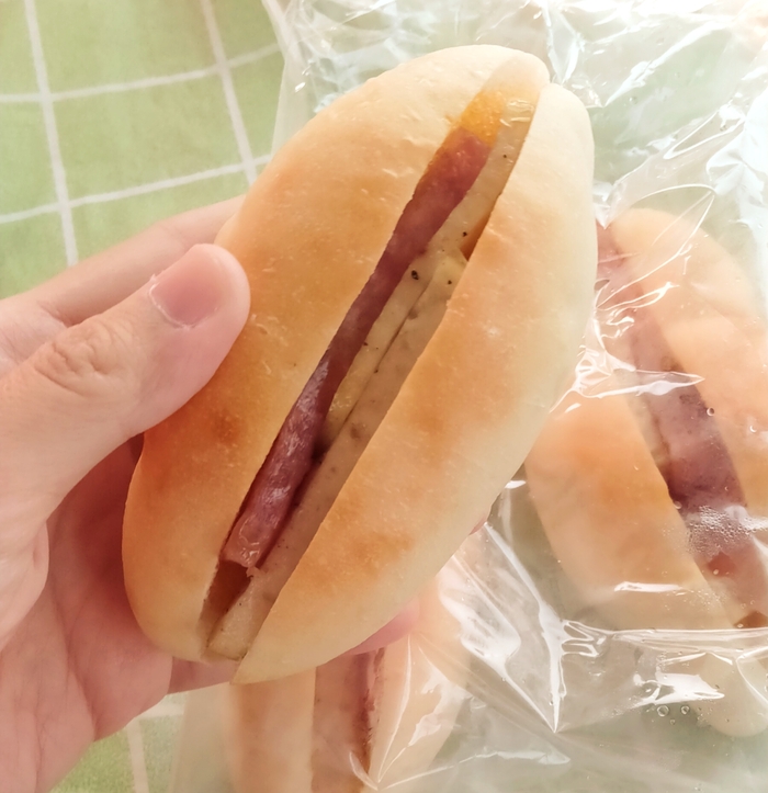 ขนมปังข้าวจี่ ไส้กุนเชียง-หมูยอ ค่ะ