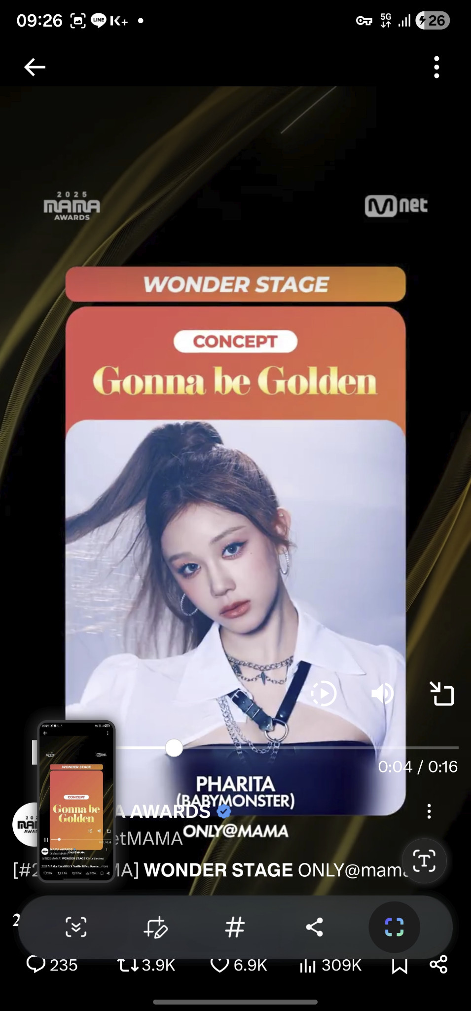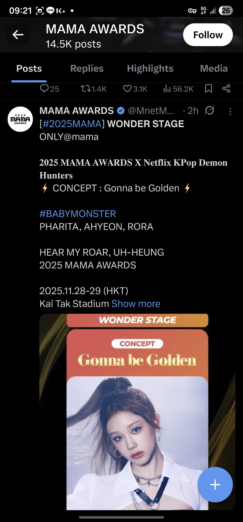 ล่าสุดตอนนี้ทาง Mama Award ออกมายืนยันแล้วว่าสามสาว Vocal ของ Babymonster ที่จะเป็นตัวแทนวงขึ้นไปร้องเพลง Golden ได้แก่