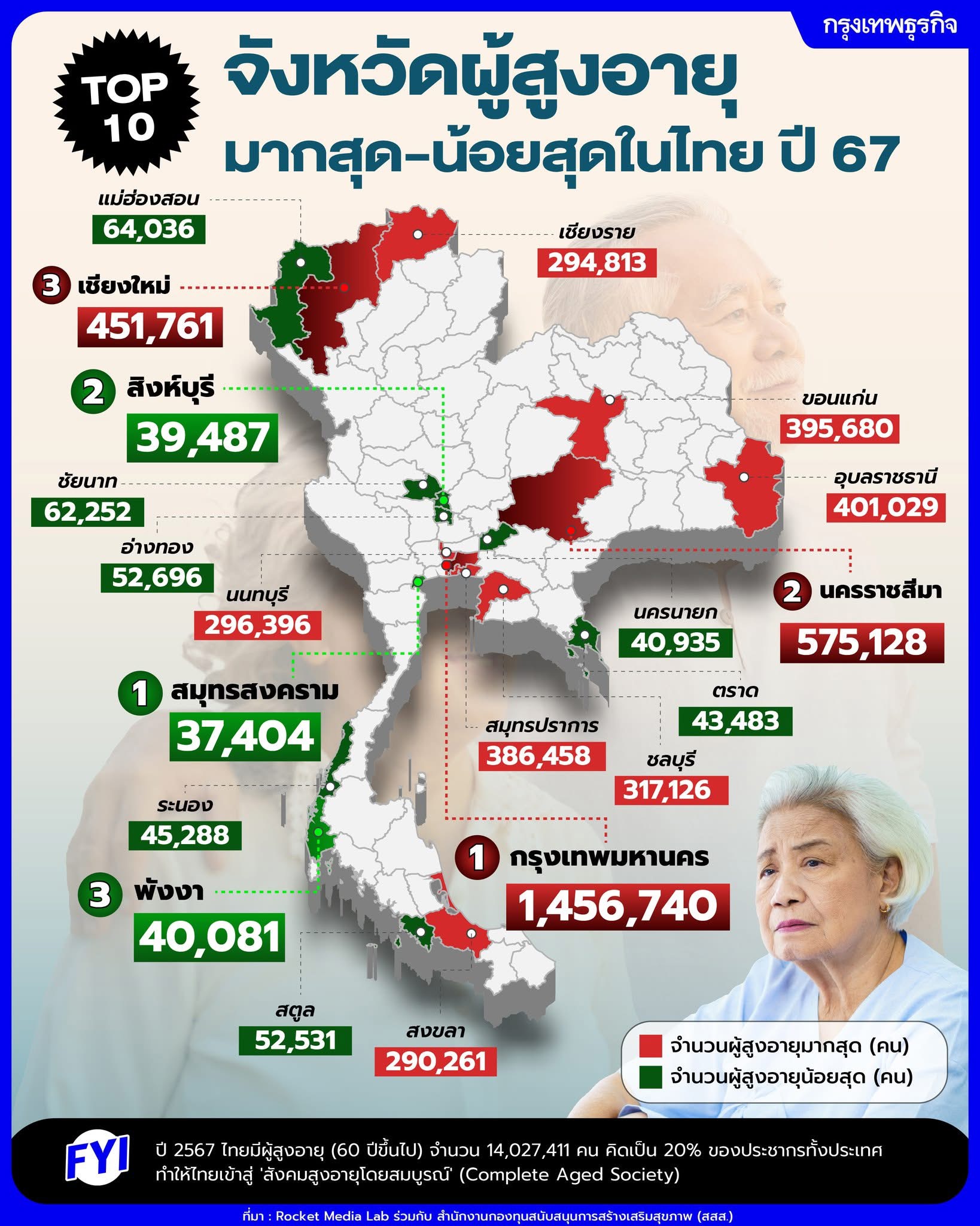 เปิด 10 อันดับ จังหวัด #ผู้สูงอายุ มากสุด-น้อยสุดในไทย ปี 67