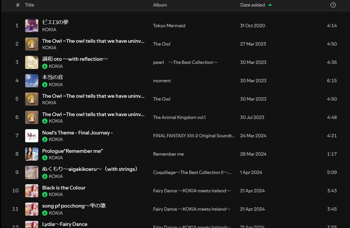 ก่อนจะทิ้งช่วงไปถึงปี 2023 ที่ไปเปิดหน้า profile ของ KOKIA และกด add เพลงคร่าว ๆ เพราะตอนนั้นน่าจะนึกขึ้นได้ว่า เพลง The Owl นี่หน่า...ที่เราฟังเมื่อหลายปีก่อน ก็เลย add ไปสัก 5 เพลง