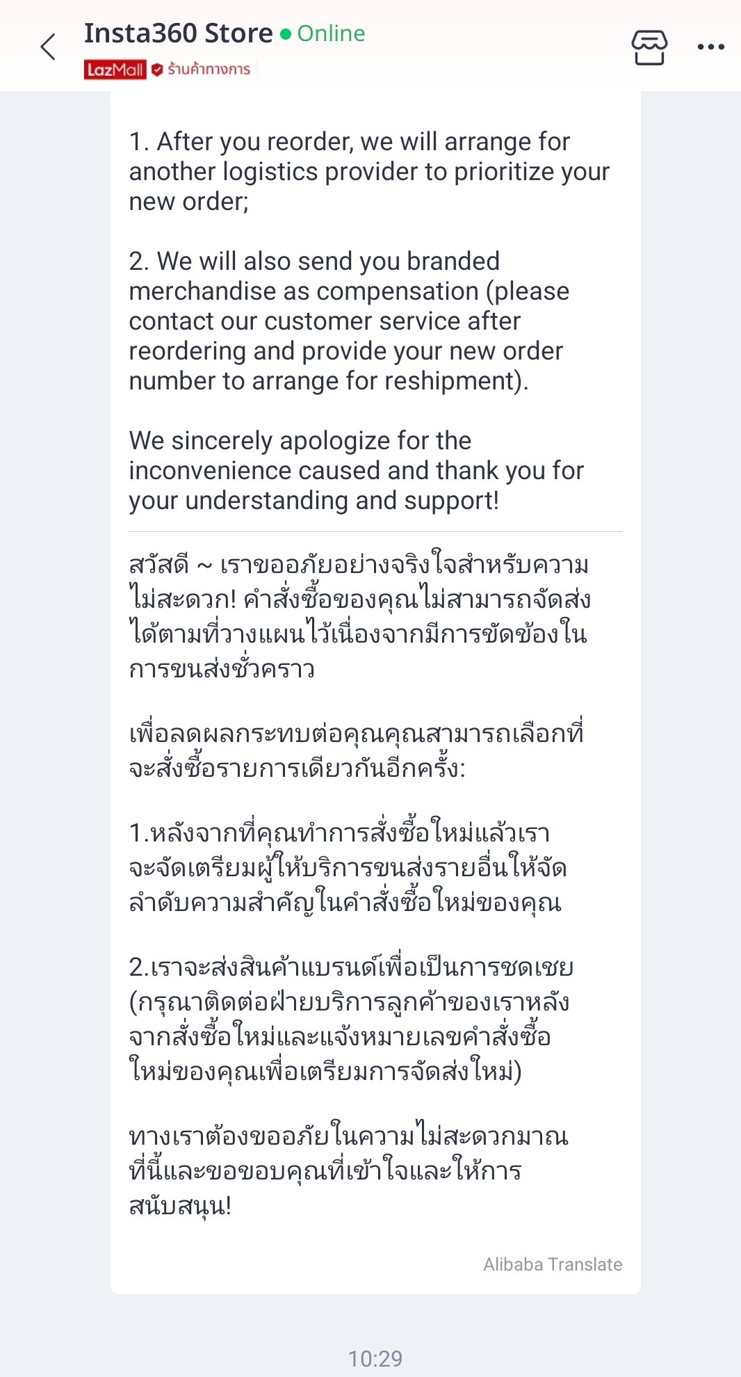เมื่อวันที่ 25 ที่ผ่านมา ได้สั่งซื้อสินค้าไปกับร้านค้าทางการที่ได้ป้าย Lazmall ด้วย