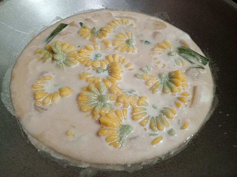 จากนั้นเทกะทิลงไป เบาไฟลง