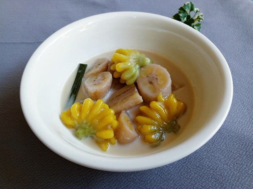 ใช้เวลาให้กล้วยซึมซับรสชาติของน้ำกะทิเข้าไป