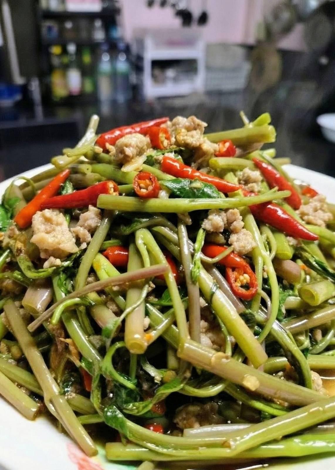 🥬🌶️🔥 เปลี่ยนผักบุ้งไฟแดงเดิมๆ ให้เป็น "ผัดเผ็ดผักบุ้งหมูสับ" รสแซ่บสะใจ เมนูทำง่าย แต่อร่อยมาก! ✨😋😋