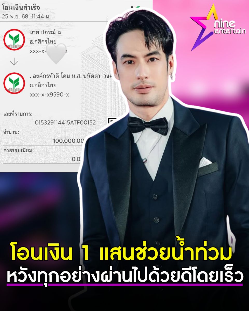 บอย ปกรณ์ บริจาคเงิน 1 แสนช่วยน้ำท่วม หวังทุกอย่างผ่านไปด้วยดีโดยเร็วที่สุด