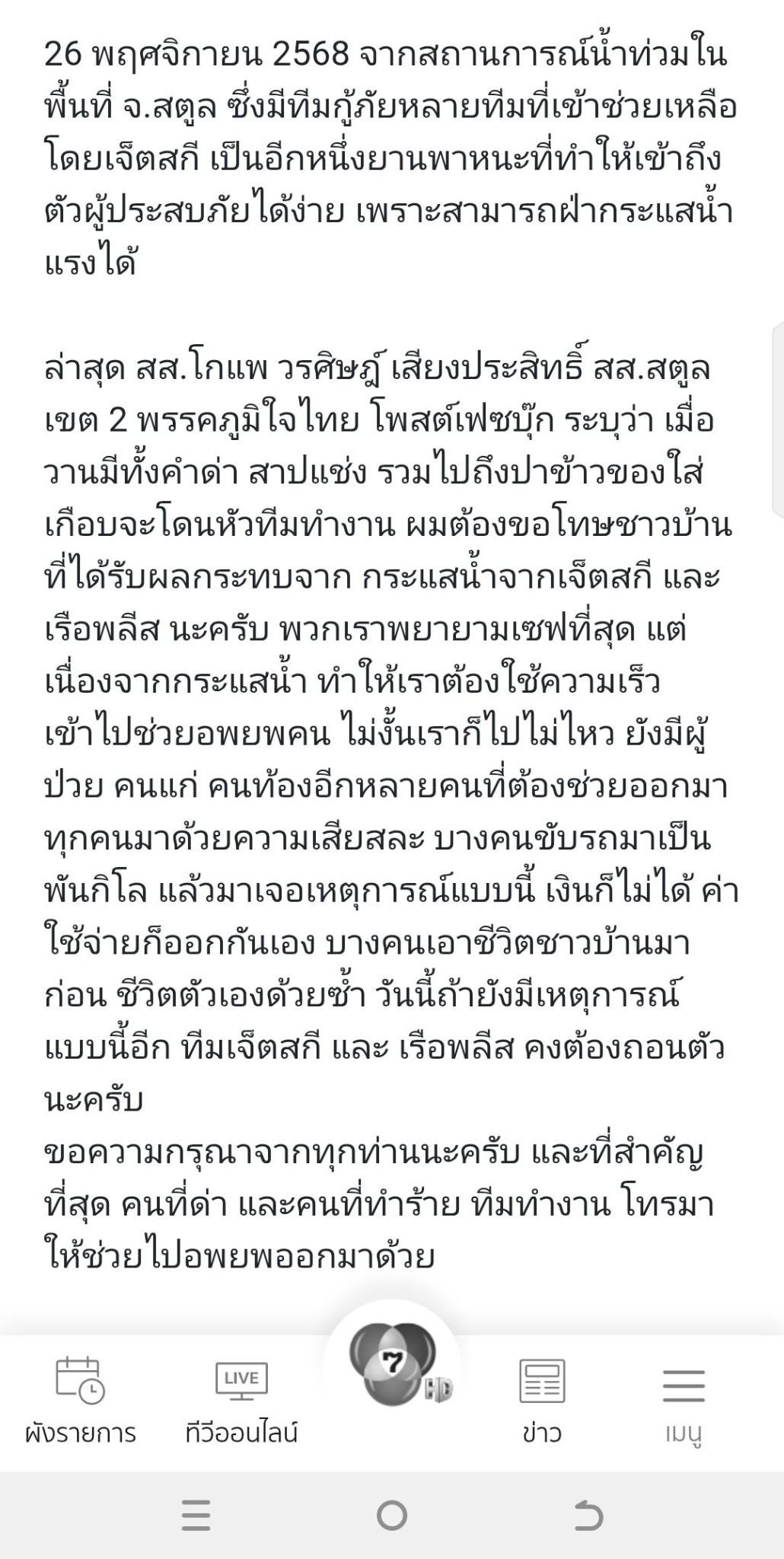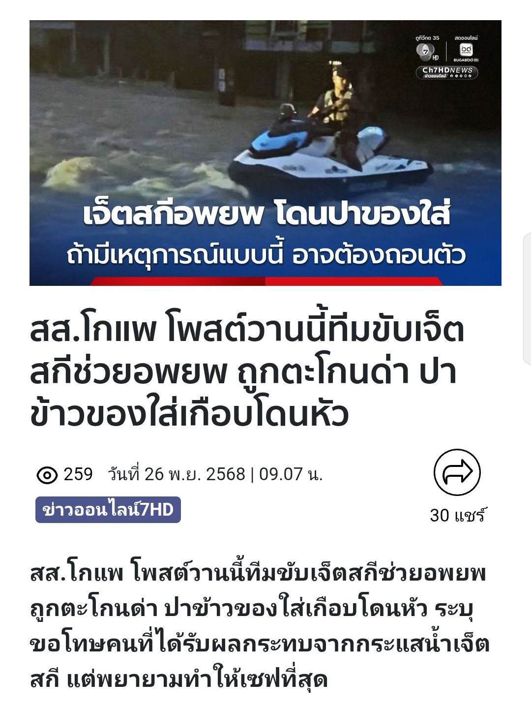 😓 สส.โกแพ โพสต์ วานนี้ทีมขับเจ็ตสกีช่วยอพยพ ถูกตะโกนด่า ปาข้าวของใส่เกือบโดนหัว