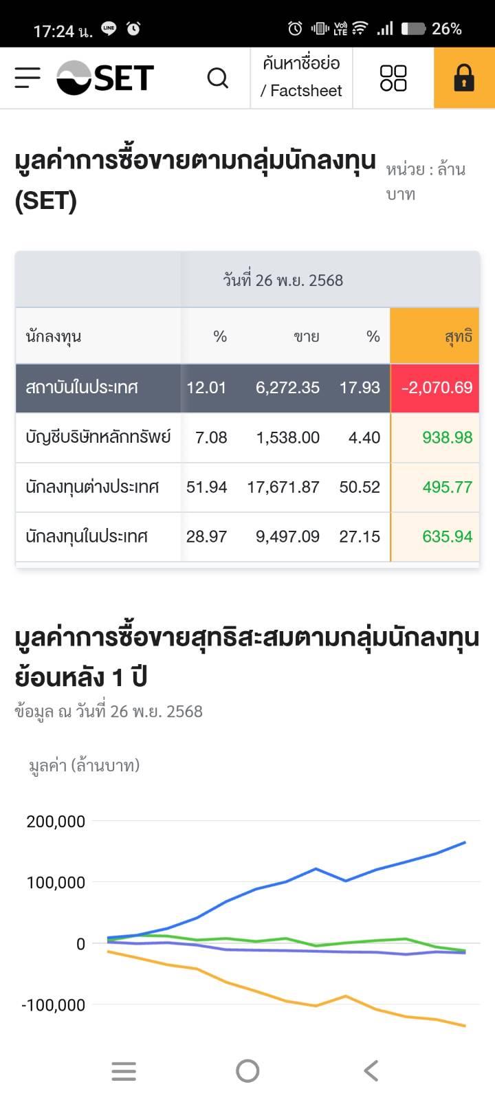 Sinthorn Summary 26/8/2568 : ต่างชาติซื้อสุทธิ 495.77 ลบ