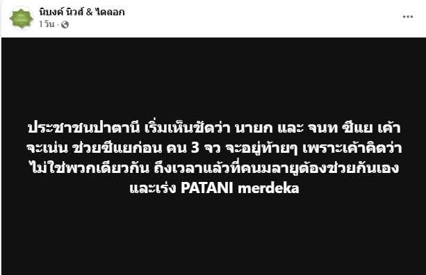 ผมอยากบอกว่า"เหตุการณ์การเมืองต่างๆ ที่รุนแรงมากขึ้น" กปปส คปท ต่างๆได้มีการปะทะกับตำรวจ แล้วมีการใช้อาวุธหรือยังไงก็แล้วแต่ "อย่าไปโยนบาปให้โจรใต้ 3 จว.ชายแดนภาคใต้เลยครับ" เพราะ